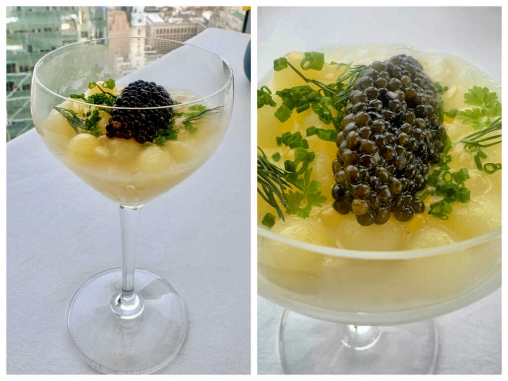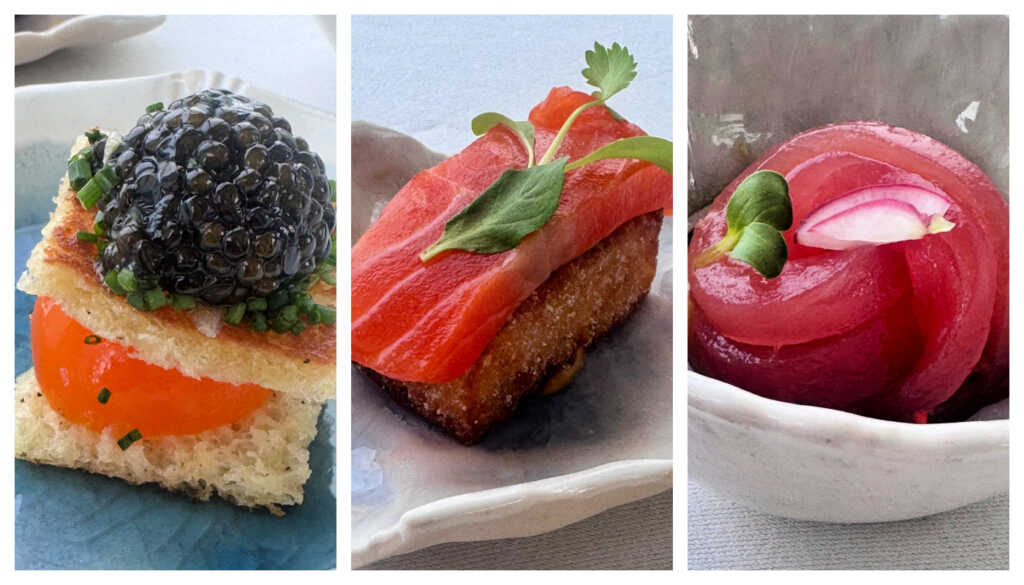 Then came one of the standouts: warm potato and tapioca crowned with Petrossian caviar. Yes, caviar was back – and no one was complaining.