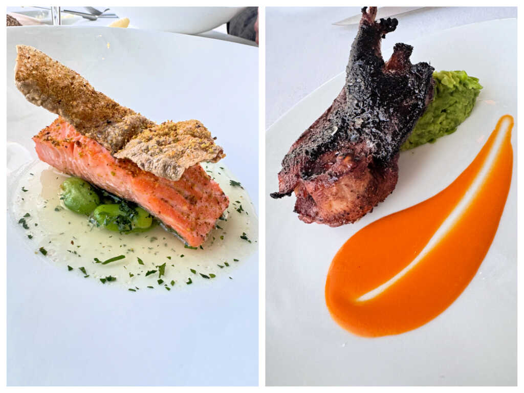 Then, a pivot: char-grilled squab. Slightly gamey, beautifully caramelized, paired with crushed sweet peas and nasturtium vinaigrette. By now I was close to full – appropriately, as we neared dessert.